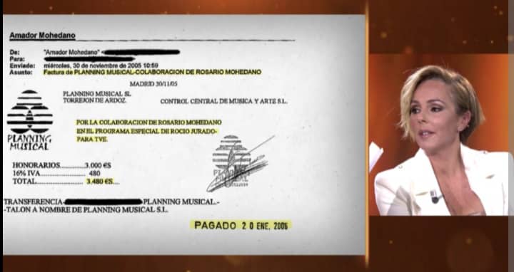 En otra factura aparece el nombre de Chayo Mohedano dónde se le depositaría a una cuenta, que luego su padre le diría a Rocío Jurado que ‘en ésa cuenta no, en mejor en ésta’ dándole a entender a Rocío Carrasco que lo de Chayo fue robado allí.